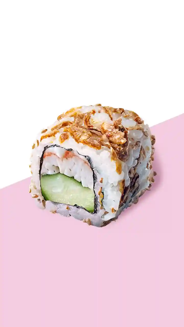 California Roll, breaded chicken, bacon, cheddar, rice, nori, panko